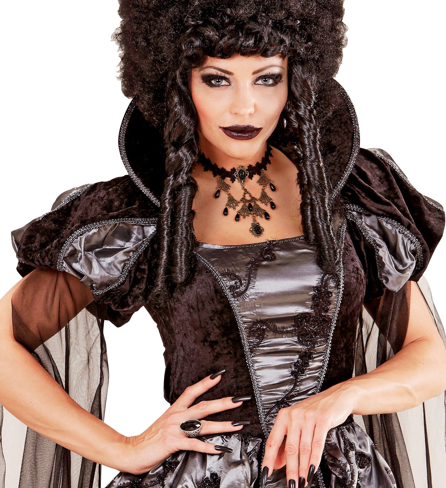 Ring met zwarte ovale gemsteen. Deze ring met een zwarte nep gemsteen eraan is speciaal voor Halloween en carnaval. Naast... En savoir plus