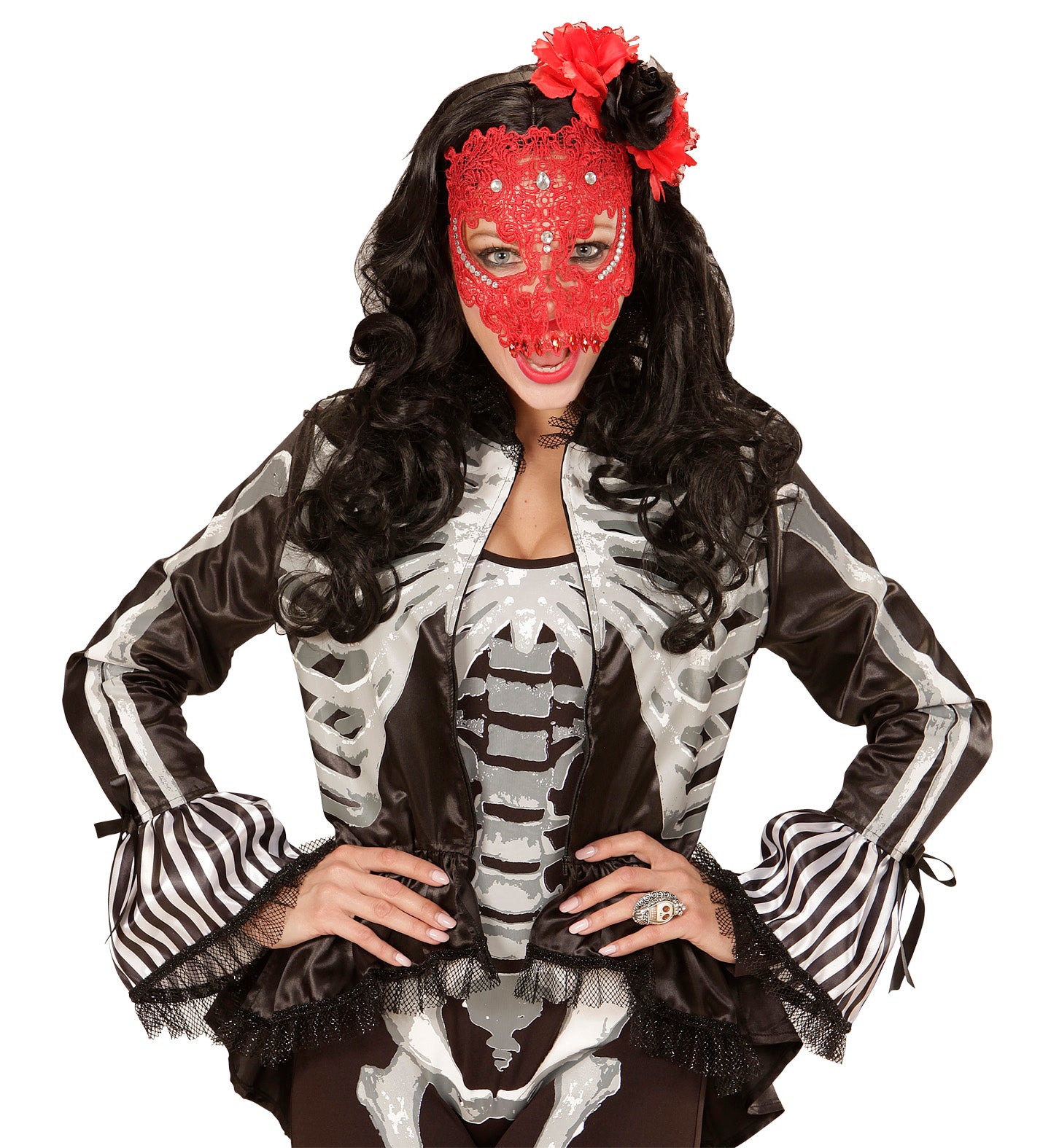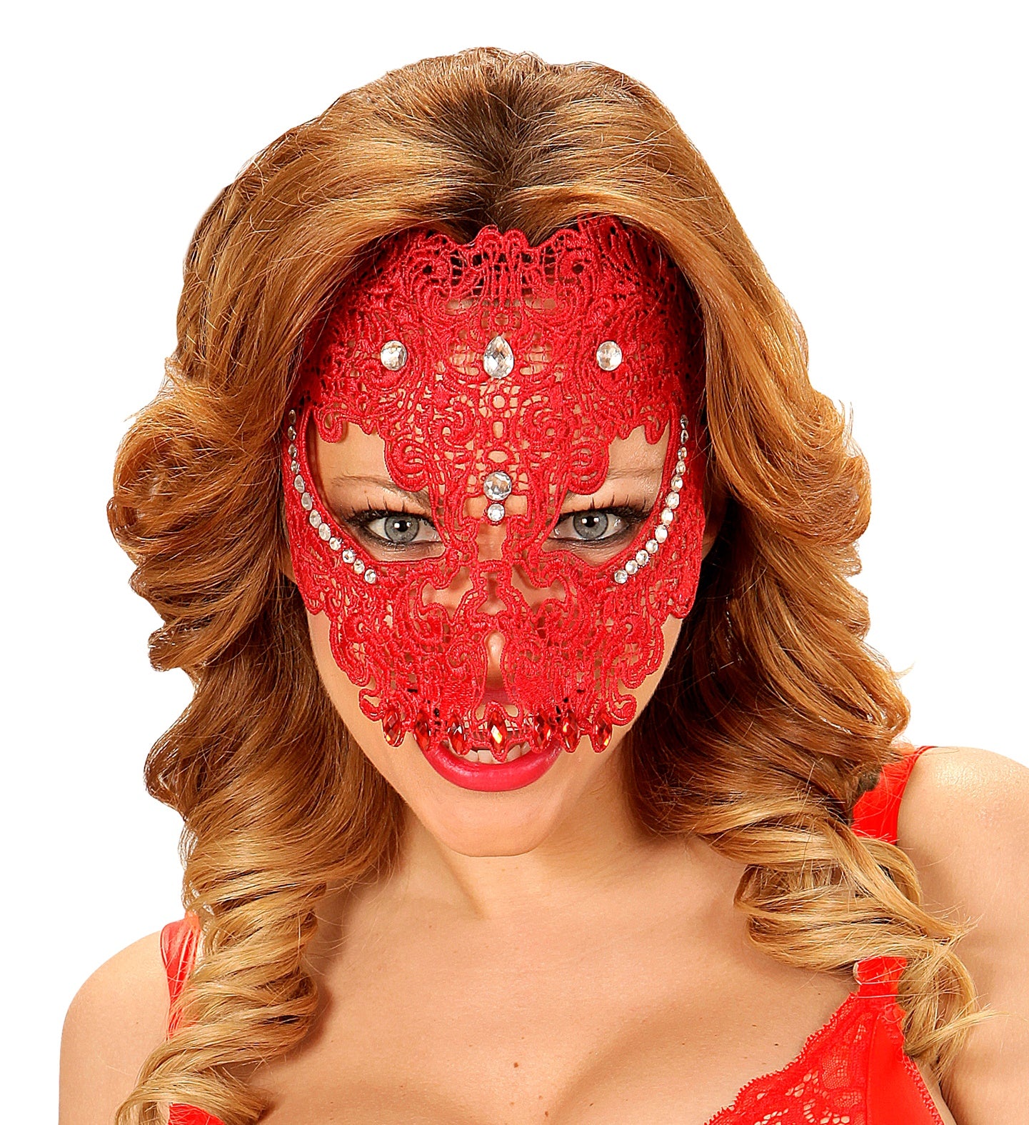 Verleid met mysterie! Deze rode kanten maskers zijn perfect voor Halloween of carnaval. Combineer met je duivelinnenjurk voor een onweerstaanbare... En savoir plus