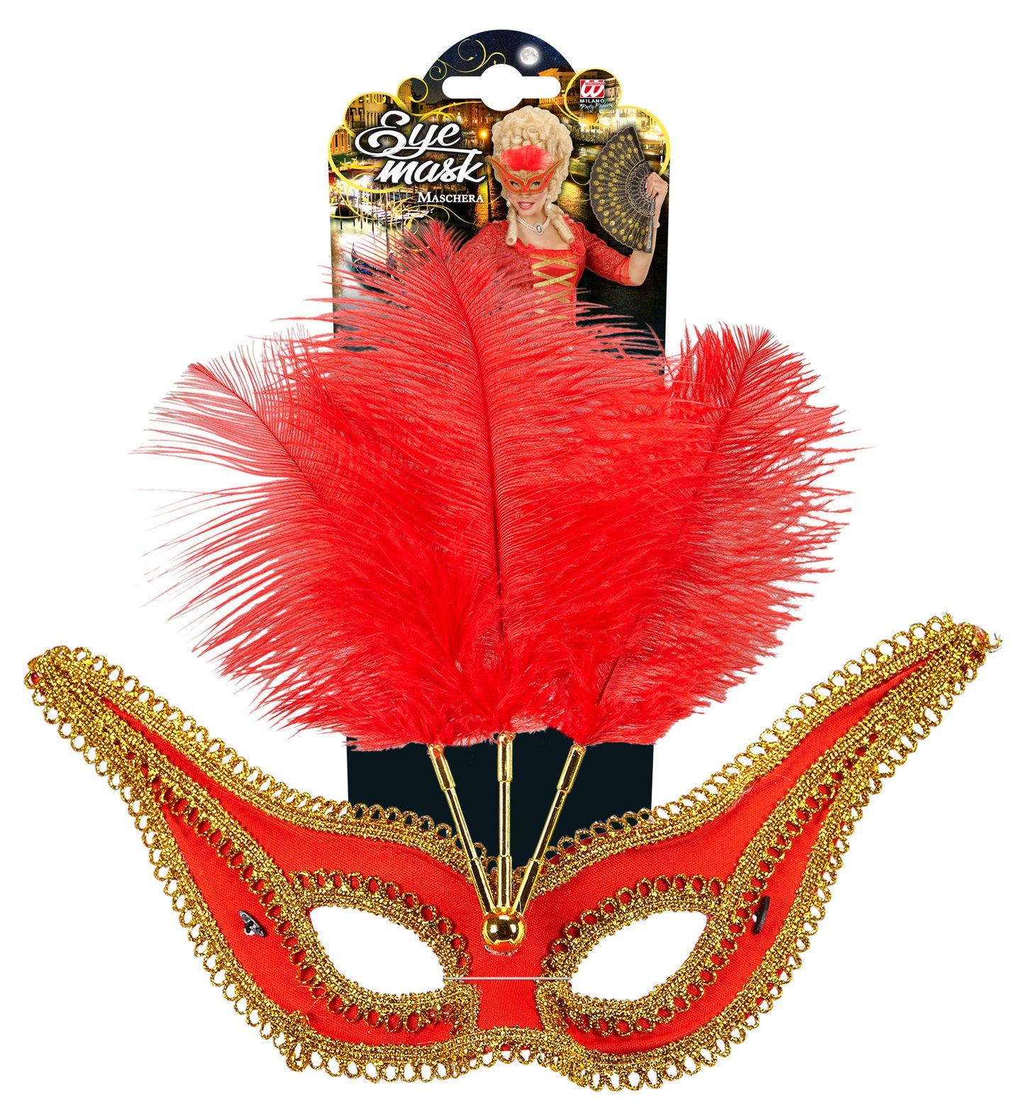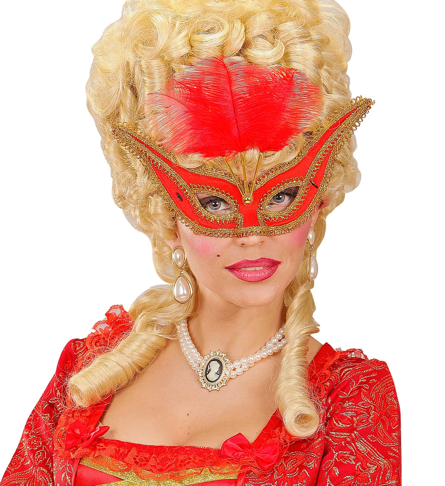 Rode oogmaskers met veertjes