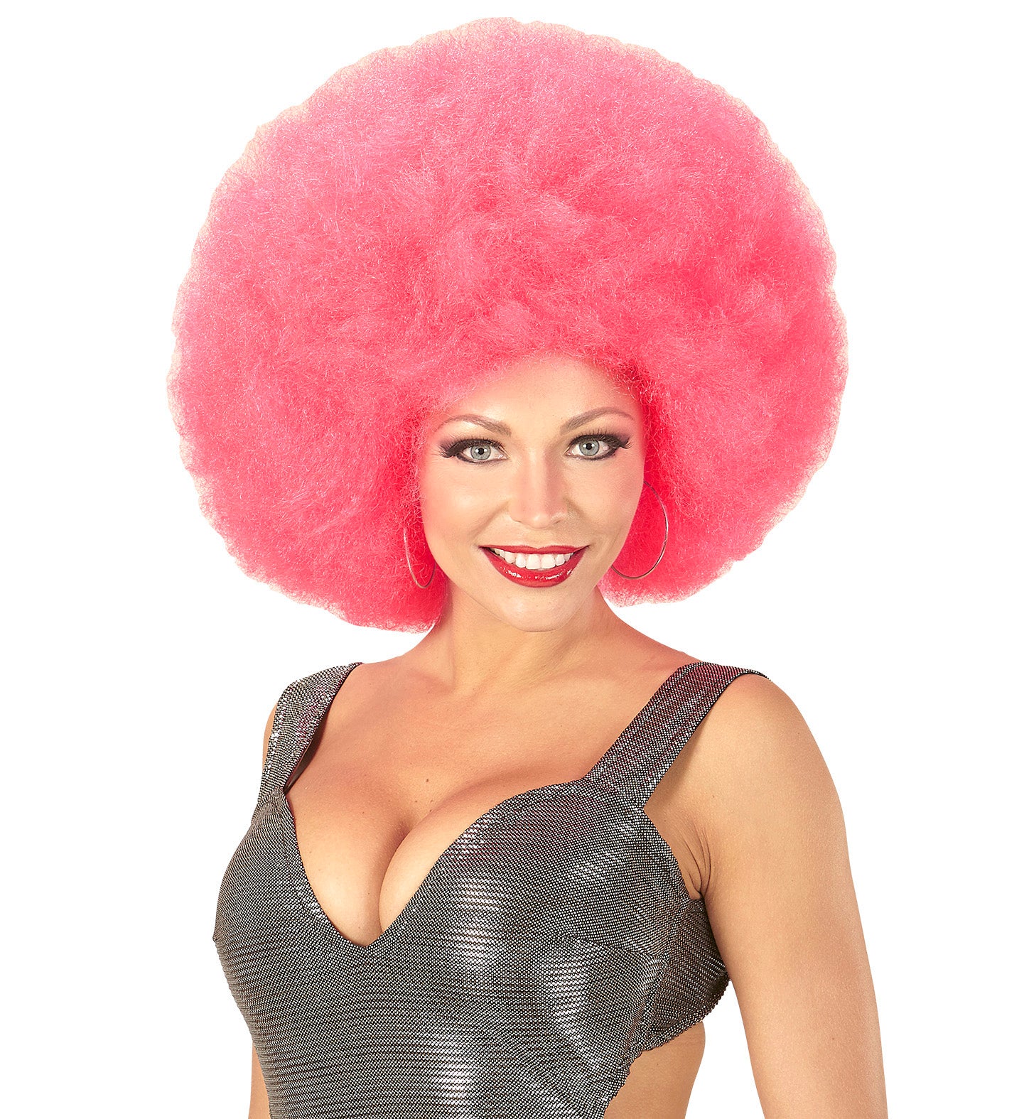 Roze oversized Afro pruik