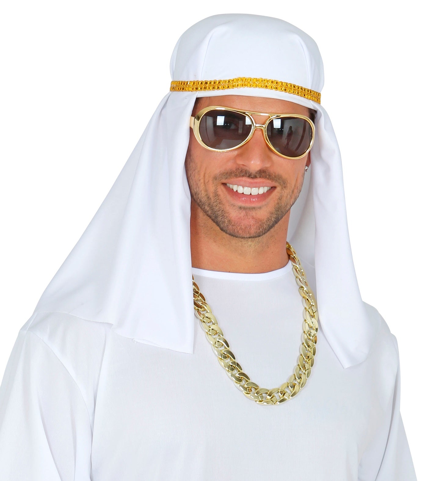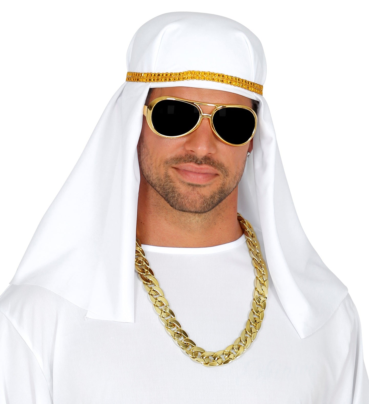 Transformeer jezelf in een mysterieuze Arabische sjeik met deze verkleedset! Perfect voor een onvergetelijk feest. Kenmerken Hoofddeksel Halsketting Bril Word... En savoir plus