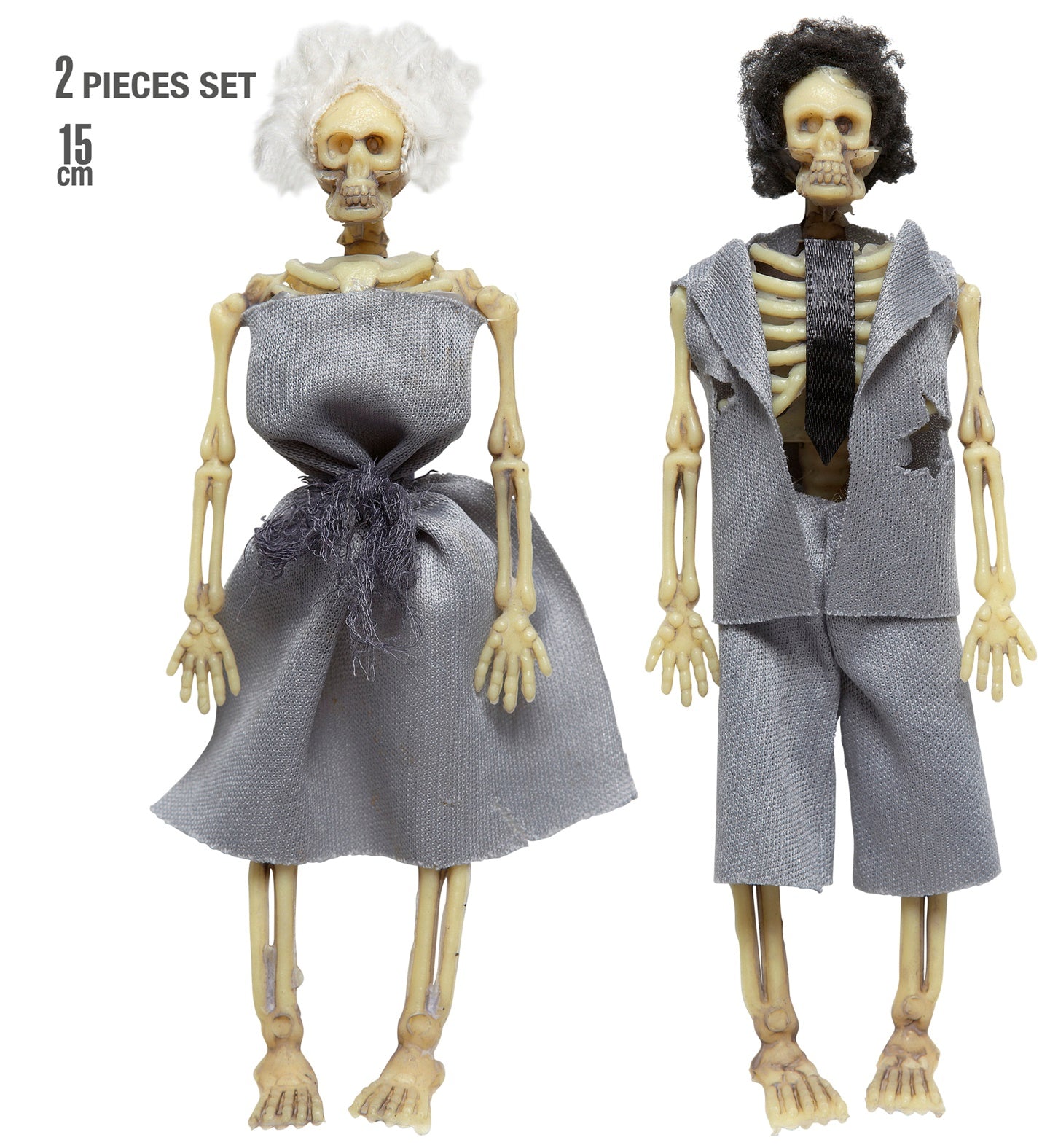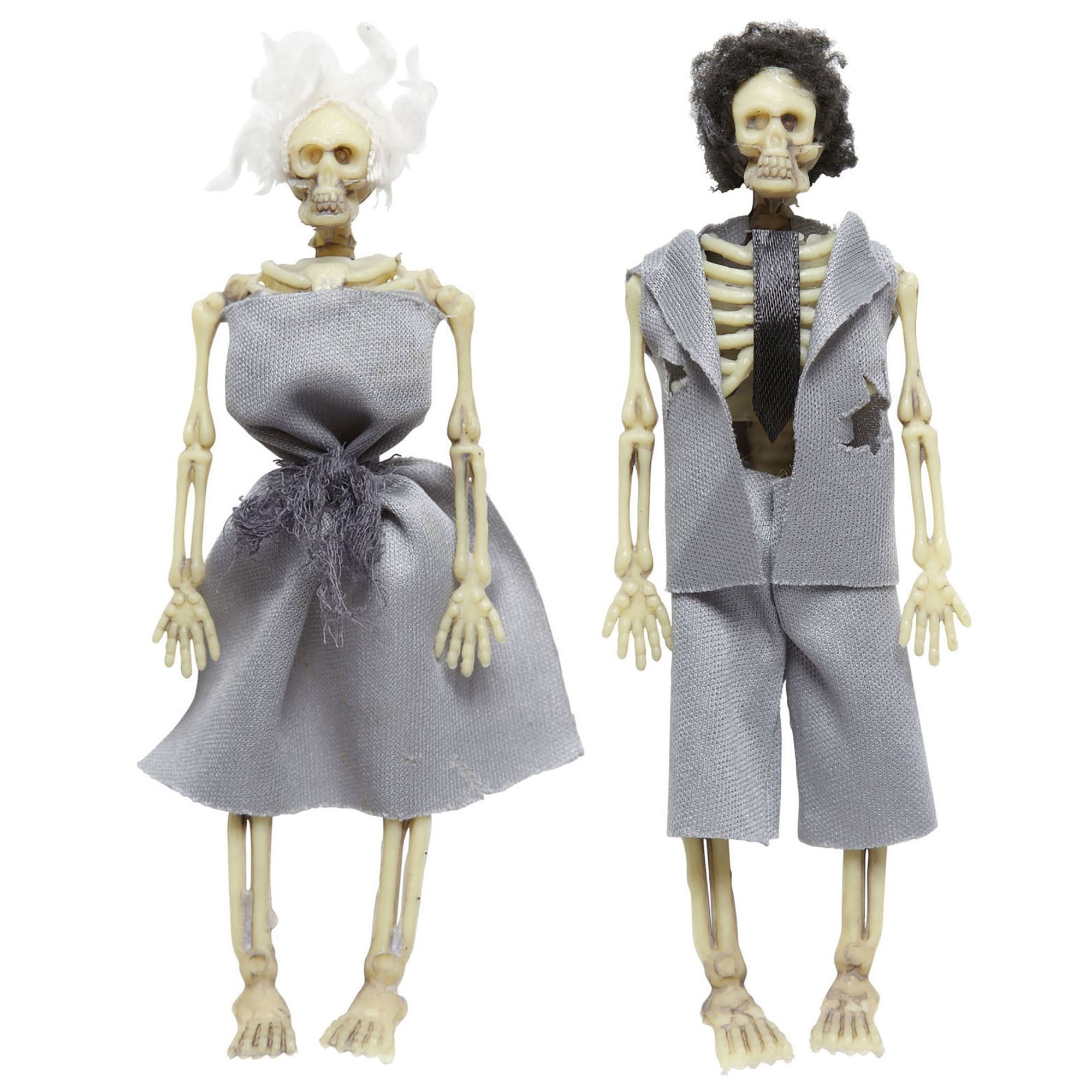 Skeletten bruidspaar met (t)rouwkleding voor Halloween Dit skeletten bruidspaar compleet met bruidsjurk en trouwpak in rouwkleding is echt super eng... En savoir plus