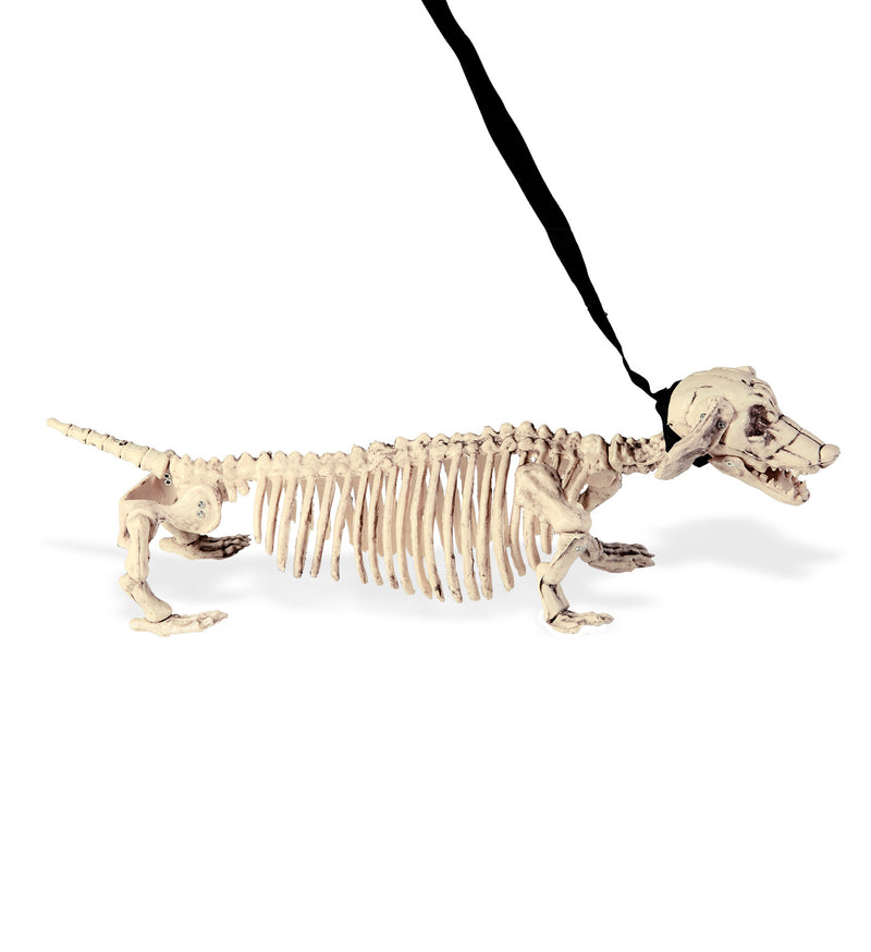 Ontmoet de Skelet Tekkel van 55 cm, jouw griezelige maatje voor Halloween! Perfect voor een spookachtig feest, maar pas op: hij komt zonder riem!