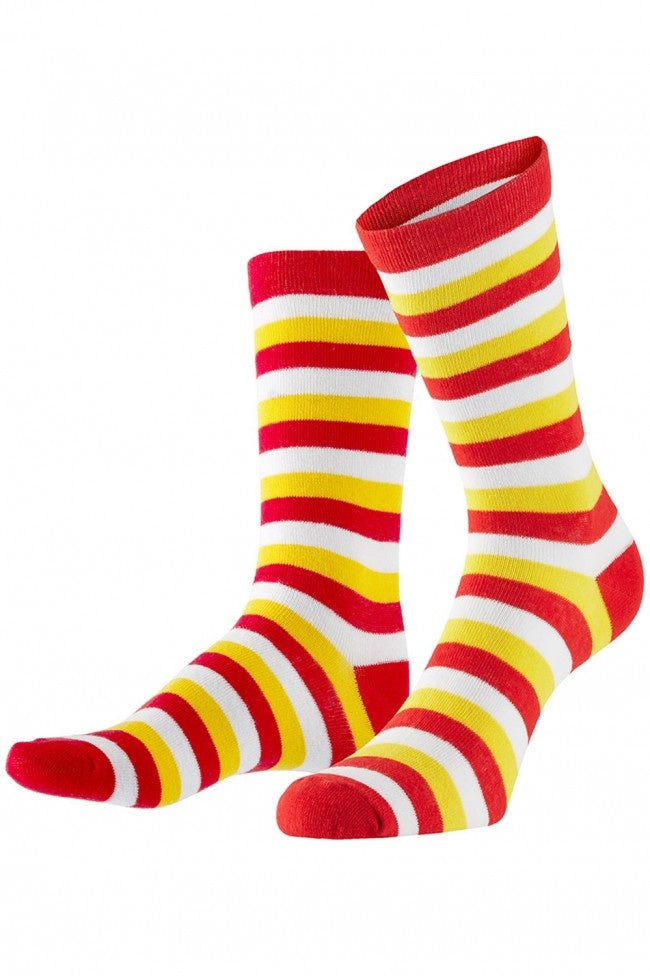 Sokken gestreept rood wit geel