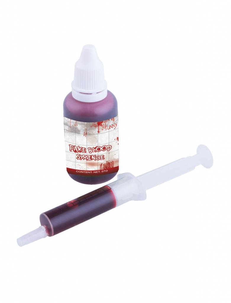 Spuitje met flesje imitatie bloed