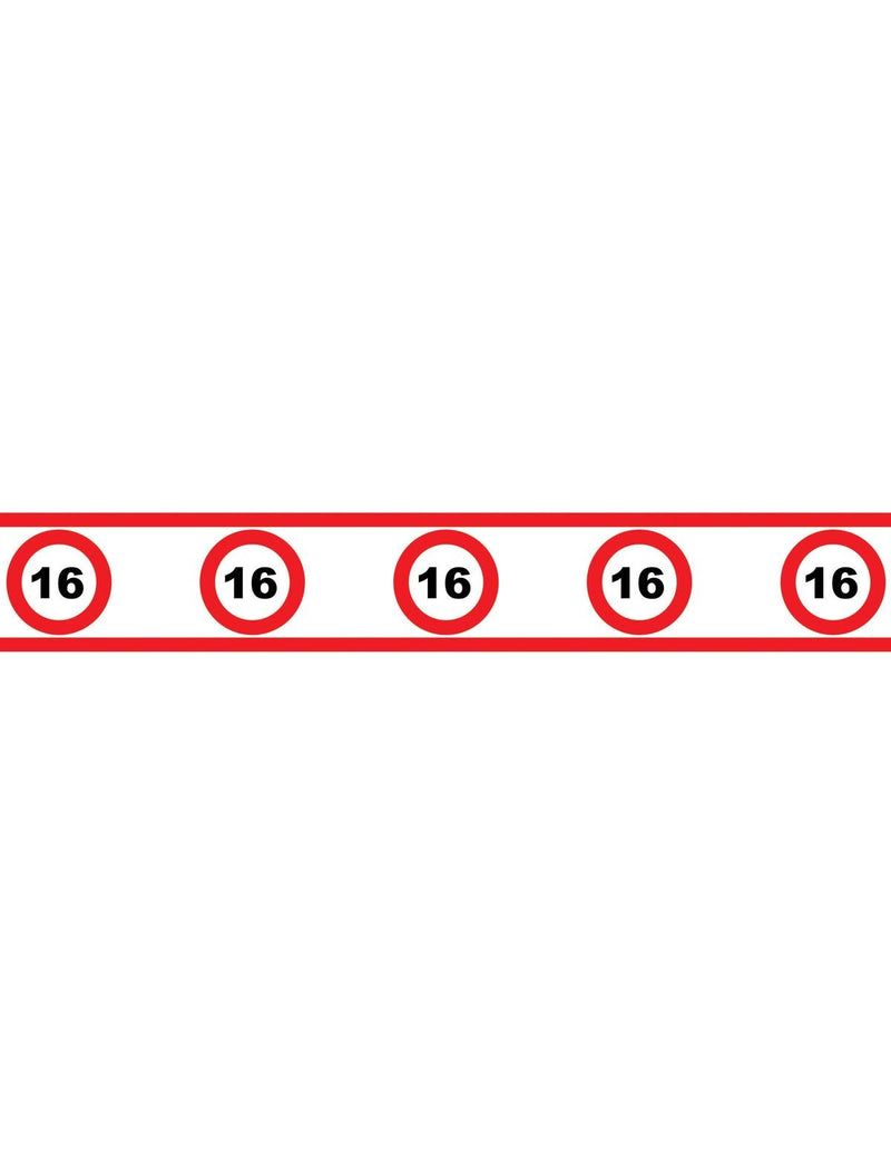 Party tape 16 jaar met verkeersborden 610x8cm