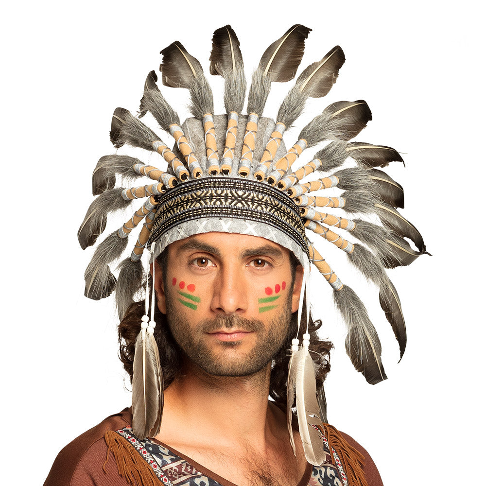 Ben je klaar om de show te stelen tijdens het volgende carnavalsfeest? Met de Tooi Wijze Opperhoofd ben je verzekerd van een indrukwekkende entree! Deze prachtige hoofdtooi is de perfecte aanvulling op jouw outfit en laat je stralen als nooit tevoren. Of je nu een doorgewinterde carnavalsvierder bent of voor het eerst de polonaise loopt, deze tooi maakt van jou de koning van het feest!