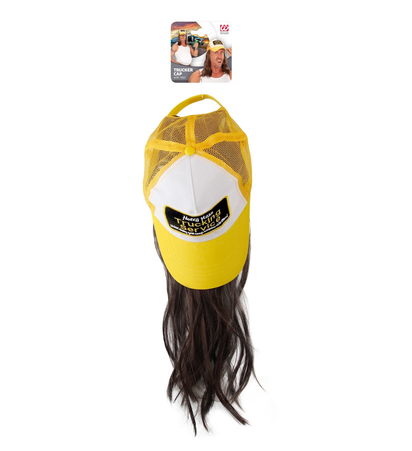 Maak je klaar voor een hilarisch feestje met deze truckerpet met lang haar! Perfect voor een onvergetelijke look.