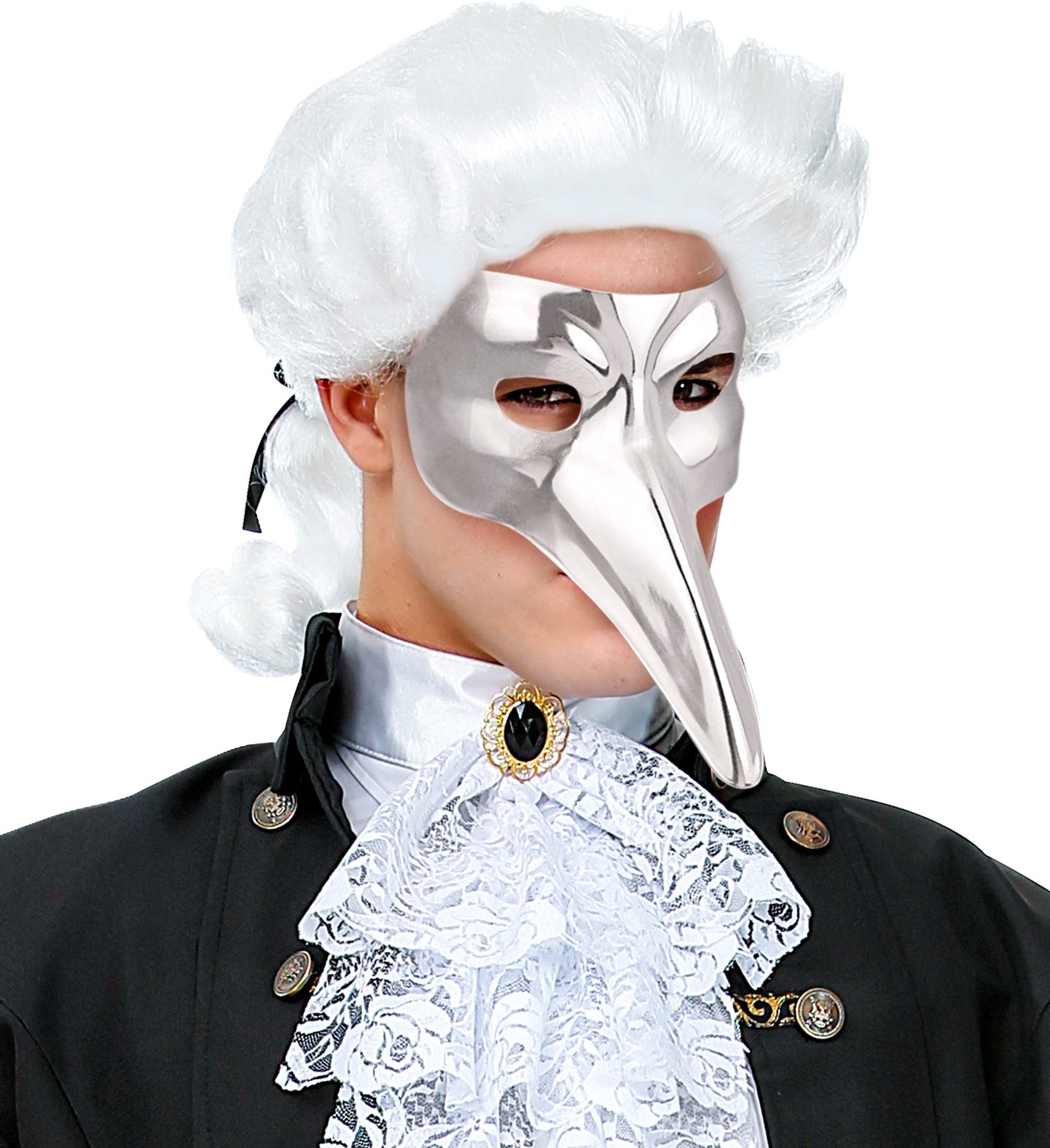 Transformeer je look met dit Venetiaans snavel masker in zilver! Perfect voor een mysterieuze entree op elk feest. Durf jij... En savoir plus