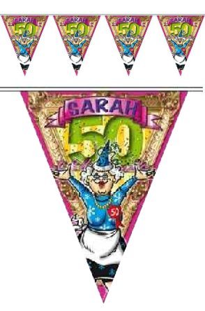 Vier Sarah's superfeest met deze vrolijke vlaggenlijn van 6 meter! Perfect om de jarige job in het zonnetje te zetten.... En savoir plus