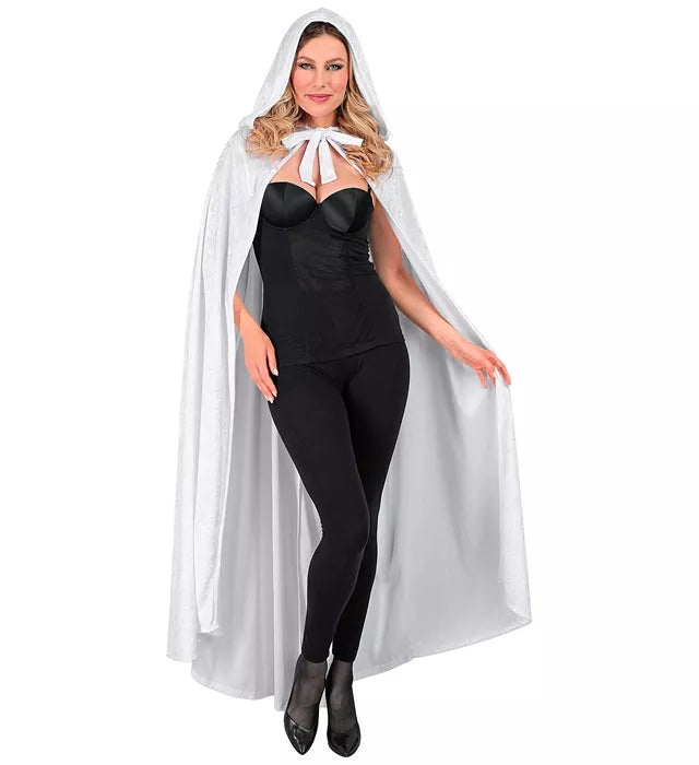 Wit fluwelen cape met kap 140cm Bente