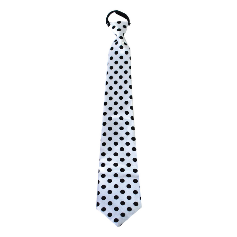 Maak je outfit compleet met deze speelse witte stropdas met zwarte stippen! Perfect voor elk feestje en gegarandeerd een blikvanger.... En savoir plus