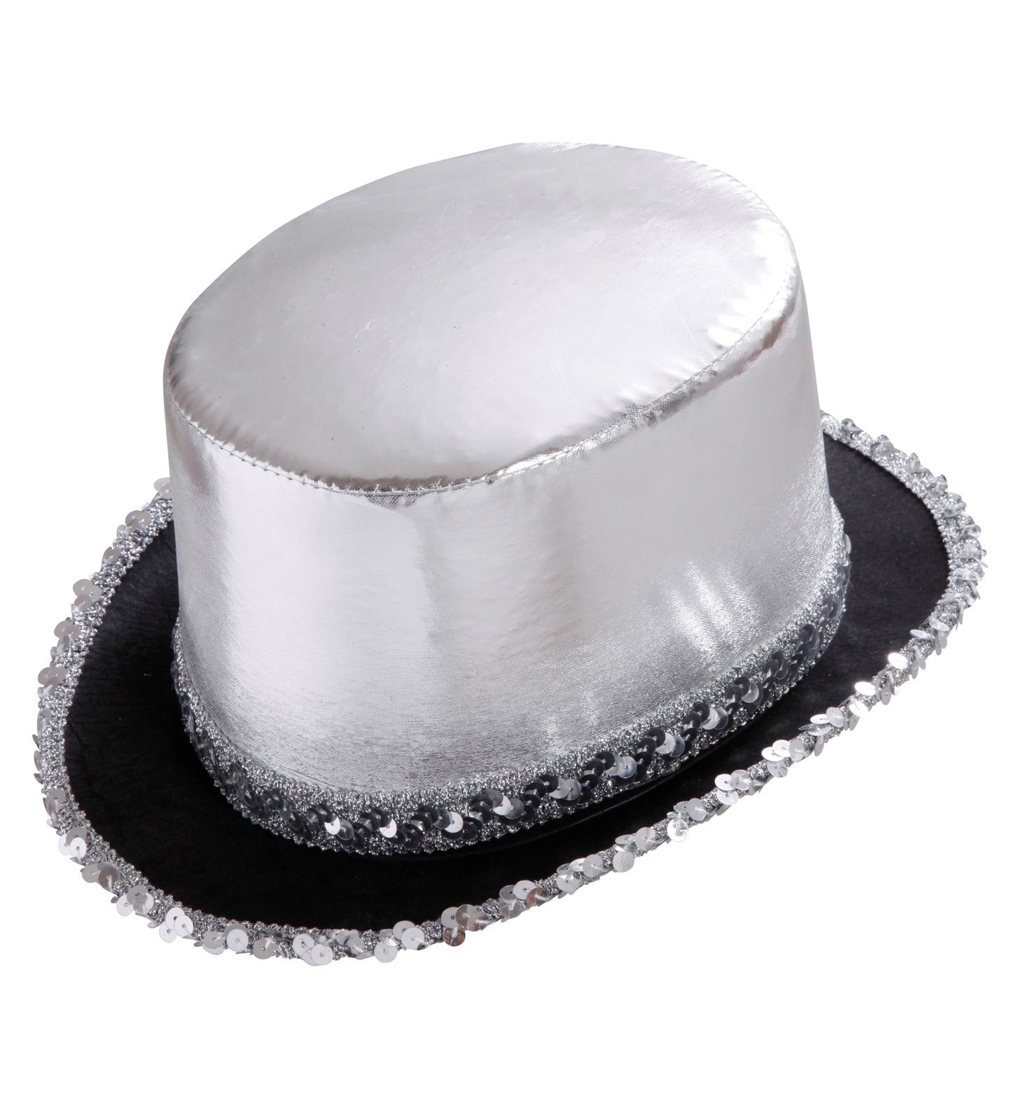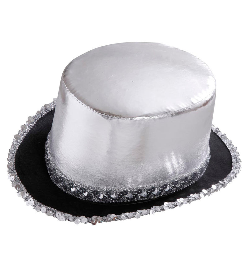 Zilveren hoge hoed met pailletten beslag