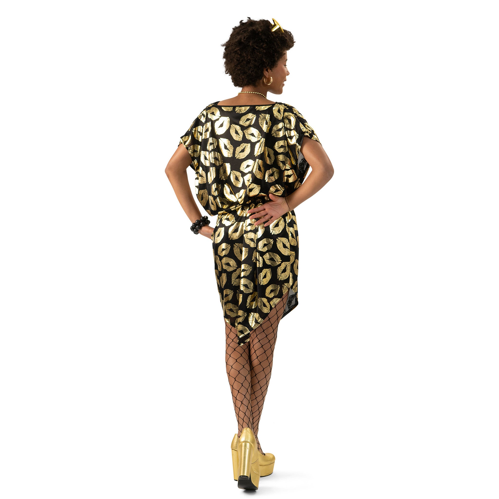 Zwart jurkje met gouden kus mondjes dames