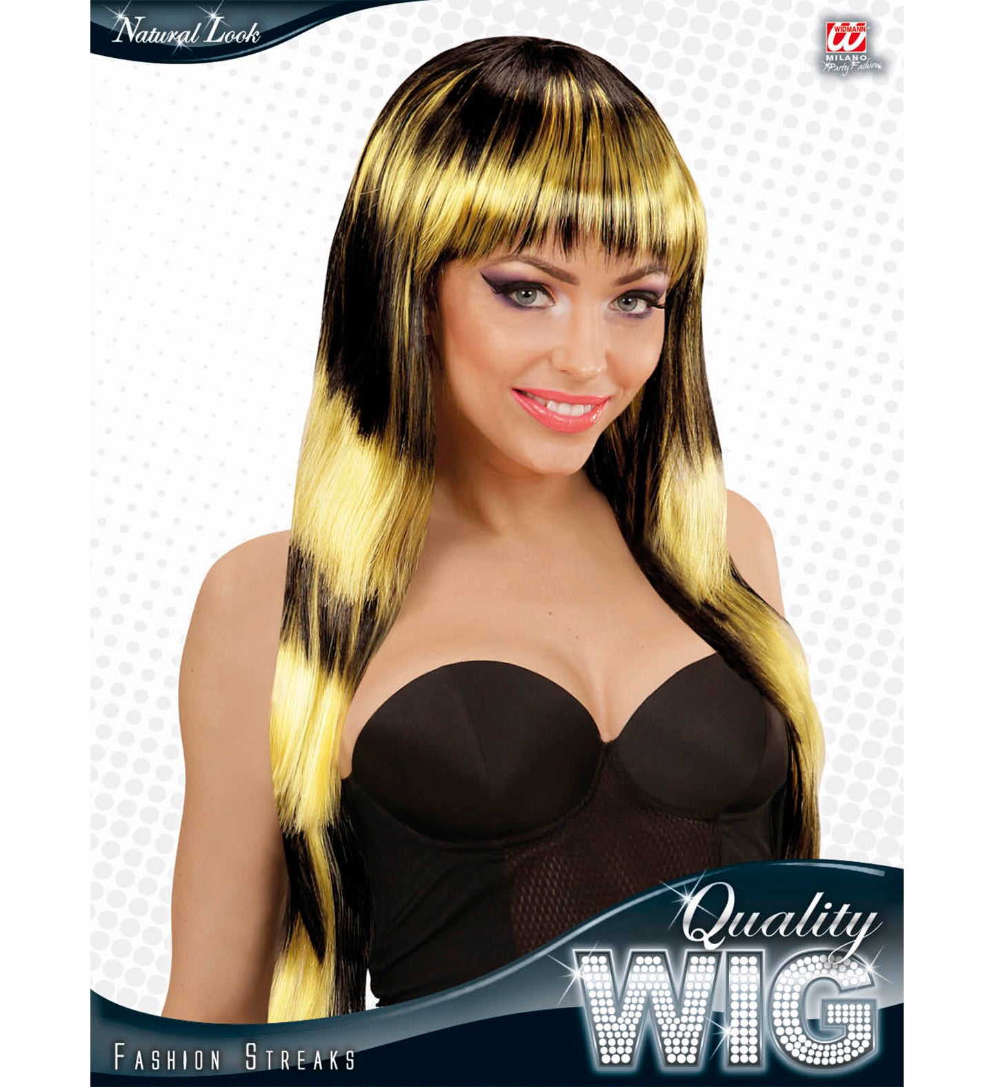 Transformeer je look met deze zwart-geel gestreepte pruik! Perfect voor elk feest, met lang haar en een speelse pony. Wees... En savoir plus
