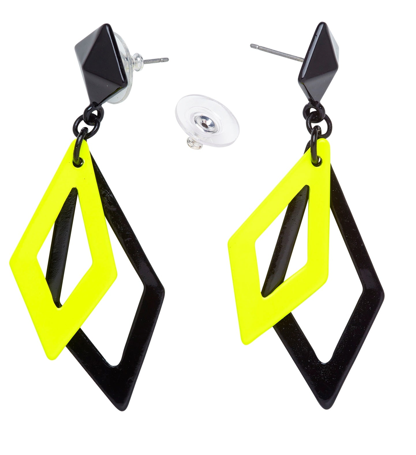 Zwart met neon gele hippie oorbellen