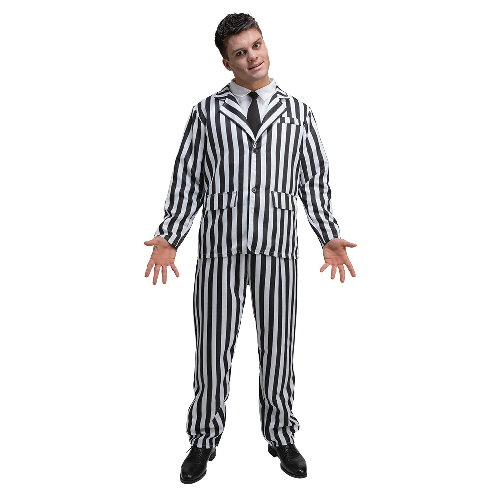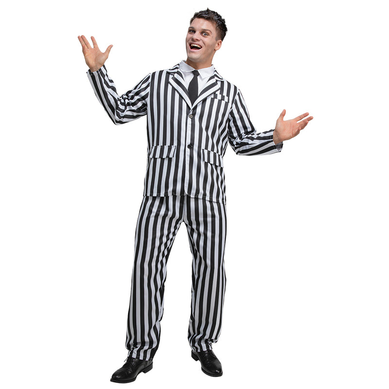 Transformeer in een stijlvolle feestganger met ons zwart-wit gestreepte kostuum voor heren! Perfect voor elke gelegenheid waar je wilt opvallen.... En savoir plus