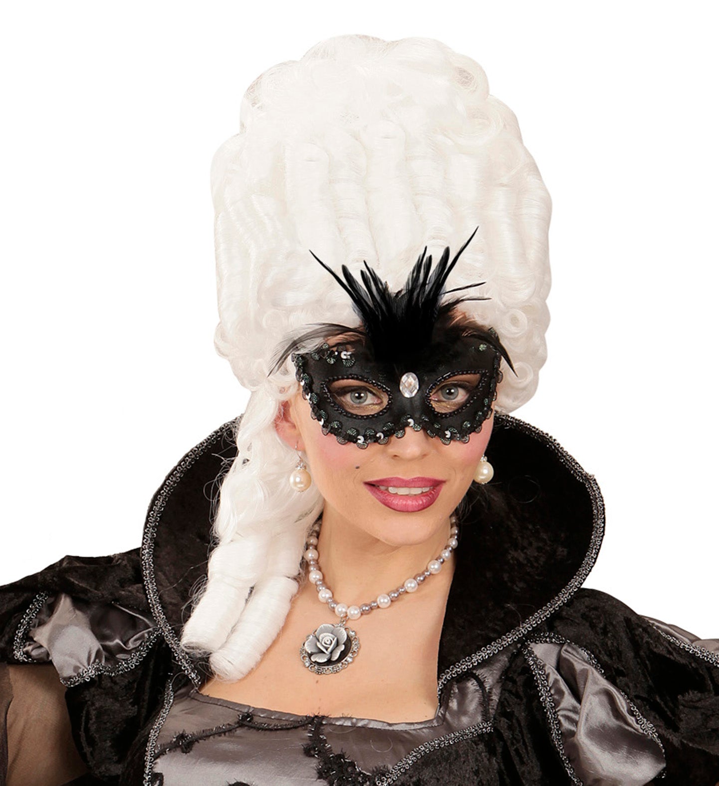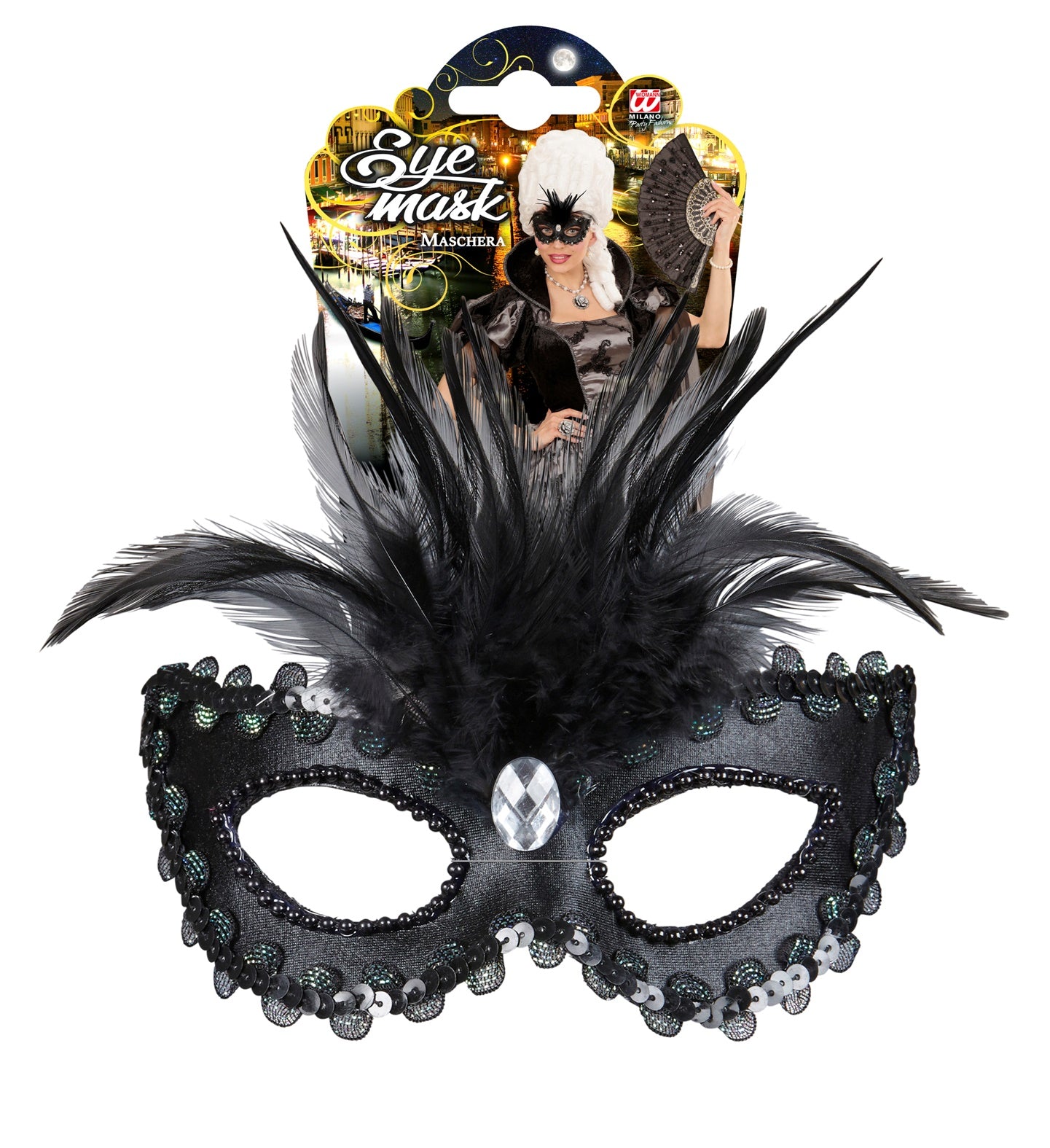 Transformeer jezelf in een mysterieuze barones met dit zwarte oogmasker, compleet met elegante veertjes. Perfect voor een avond vol geheimen... En savoir plus
