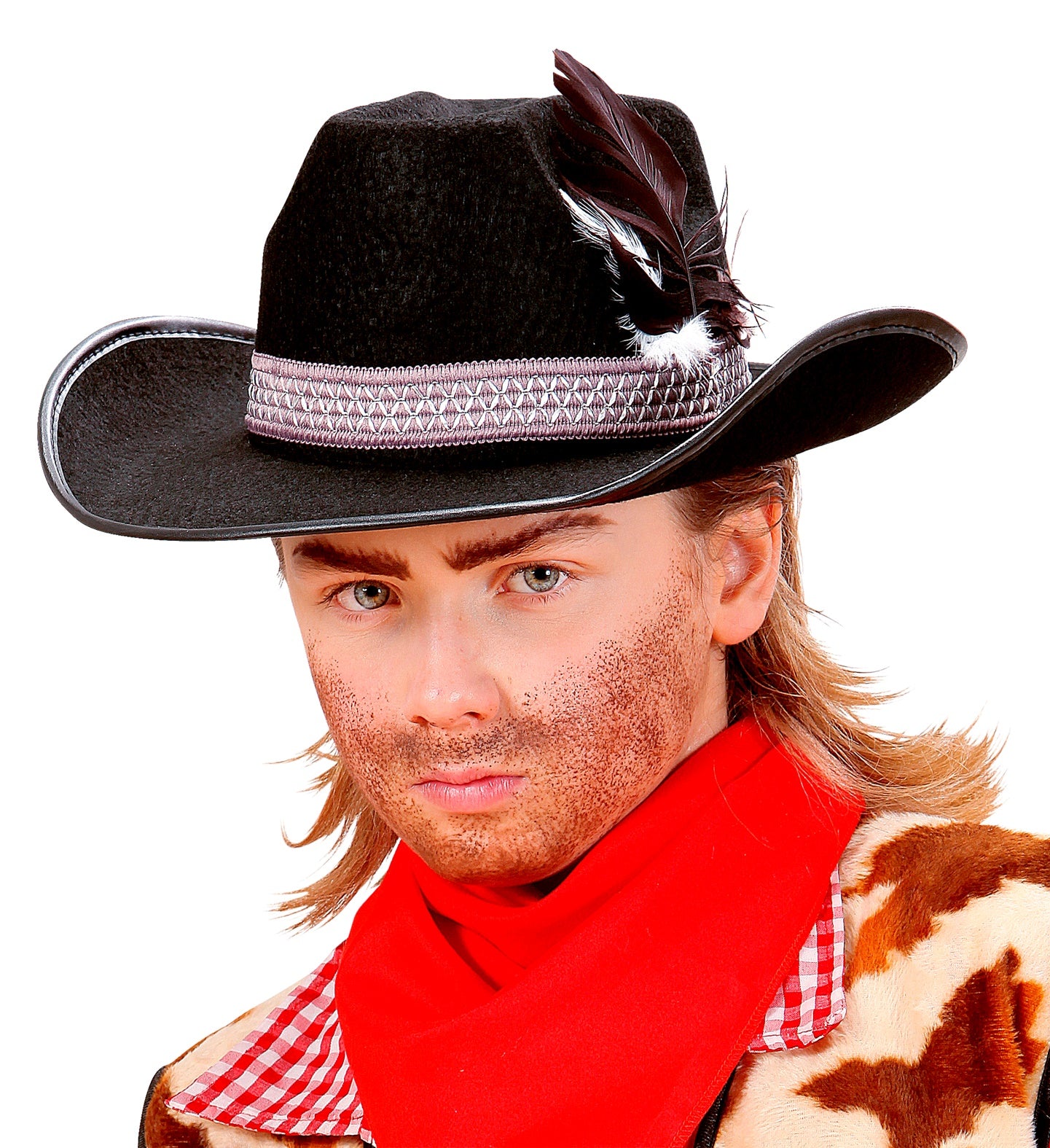 Zwarte kinder cowboyhoed met veren
